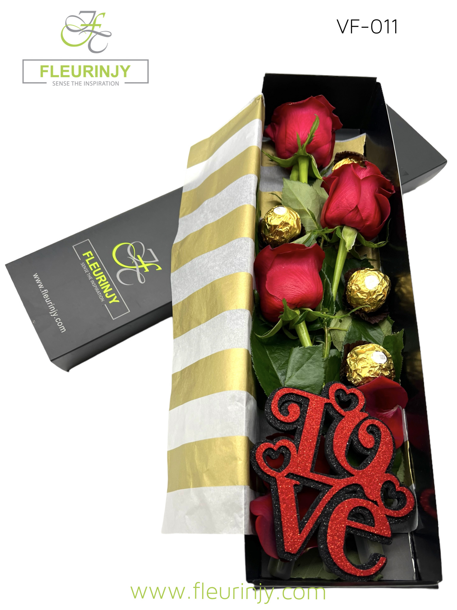 OUR FAMOUS TIE BOX 3 RED ROSES 4 ROCHER CHOCOLATES