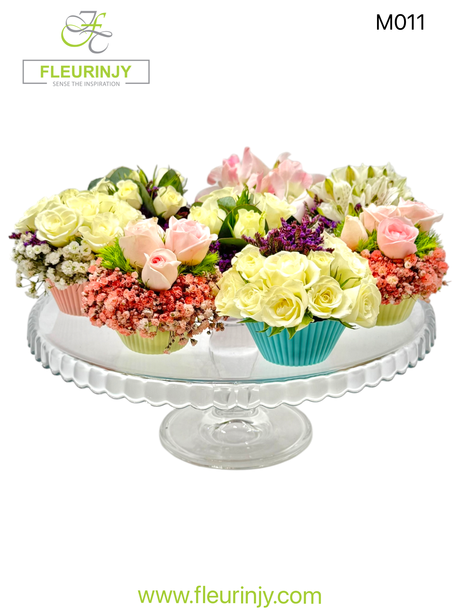 THE CUP CAKE GLASS STAND TURKISH  Pasabahce  GLASS PLATE  8 ASSORTED FLOWER CUPCAKES IN SILICONE MOLD