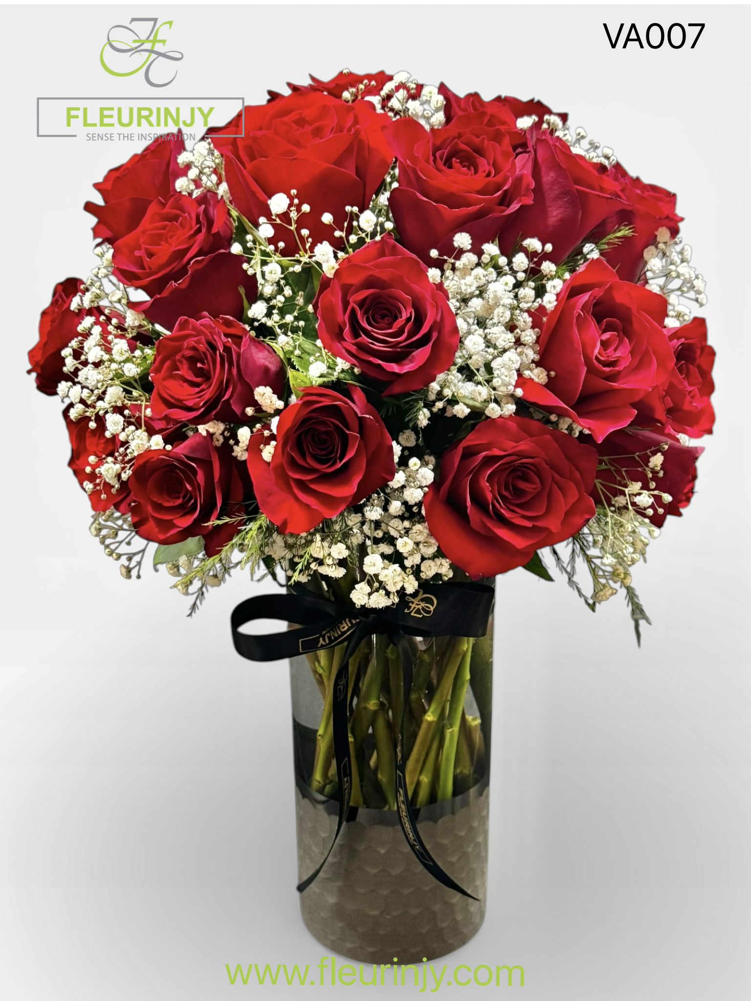 30 Red Roses, gypsophil, greens